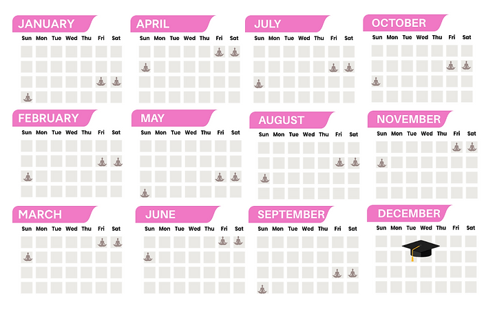 Meeting one weekend a month for twelve months gives your nervous system time to process, your muscles time to remember, and your brain time to rewire. Each gathering is like a lab: we test techniques, explore philosophy, and recalibrate body and mind. The spaces in between are where the real integration happens—daily life becomes the practice field, and you arrive each month ready to level up. By the end of the year, you’ll have built not just hours of training, but a whole new operating system for your yoga and your teaching.